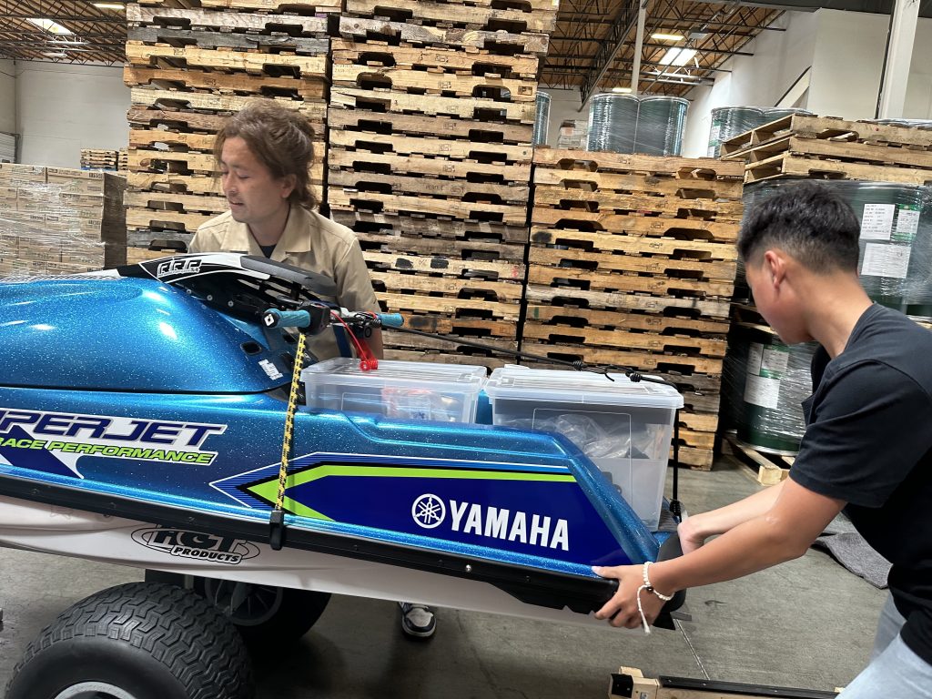 到着初日、車を借りてすぐにロサンゼルスに保管頂いているマシンを梱包から出してピックアップです。