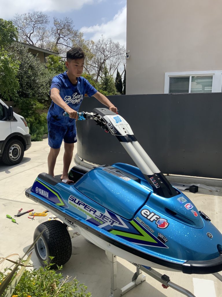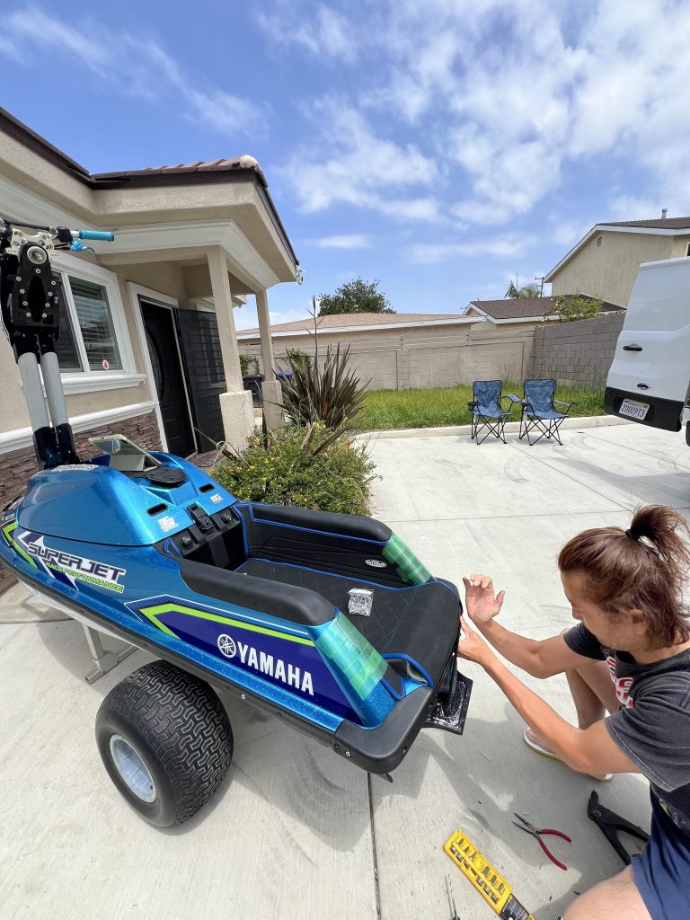 2日目はマシン作業でデッキマット施工と、デカールの施工を行い、エンジンオイルを買いに近くのデルアモへ買い出しです。ライジャケとオイルをゲットしました。