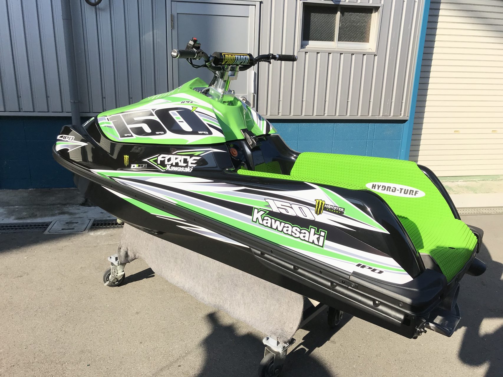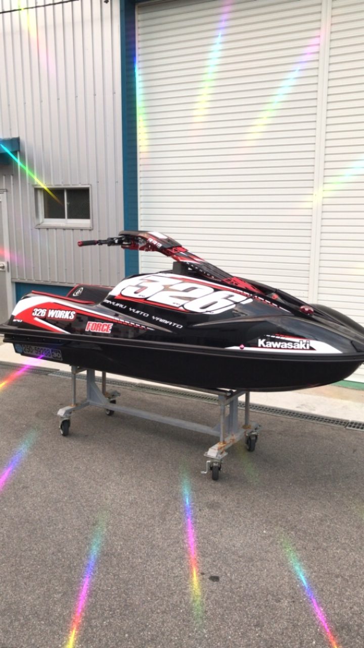KAWASAKI SXRデカール施工完成です。 ポール部分もカスタムしています。 デカールカスタム流行です。 ノーマルとはガラリと雰囲気が変わります。 -