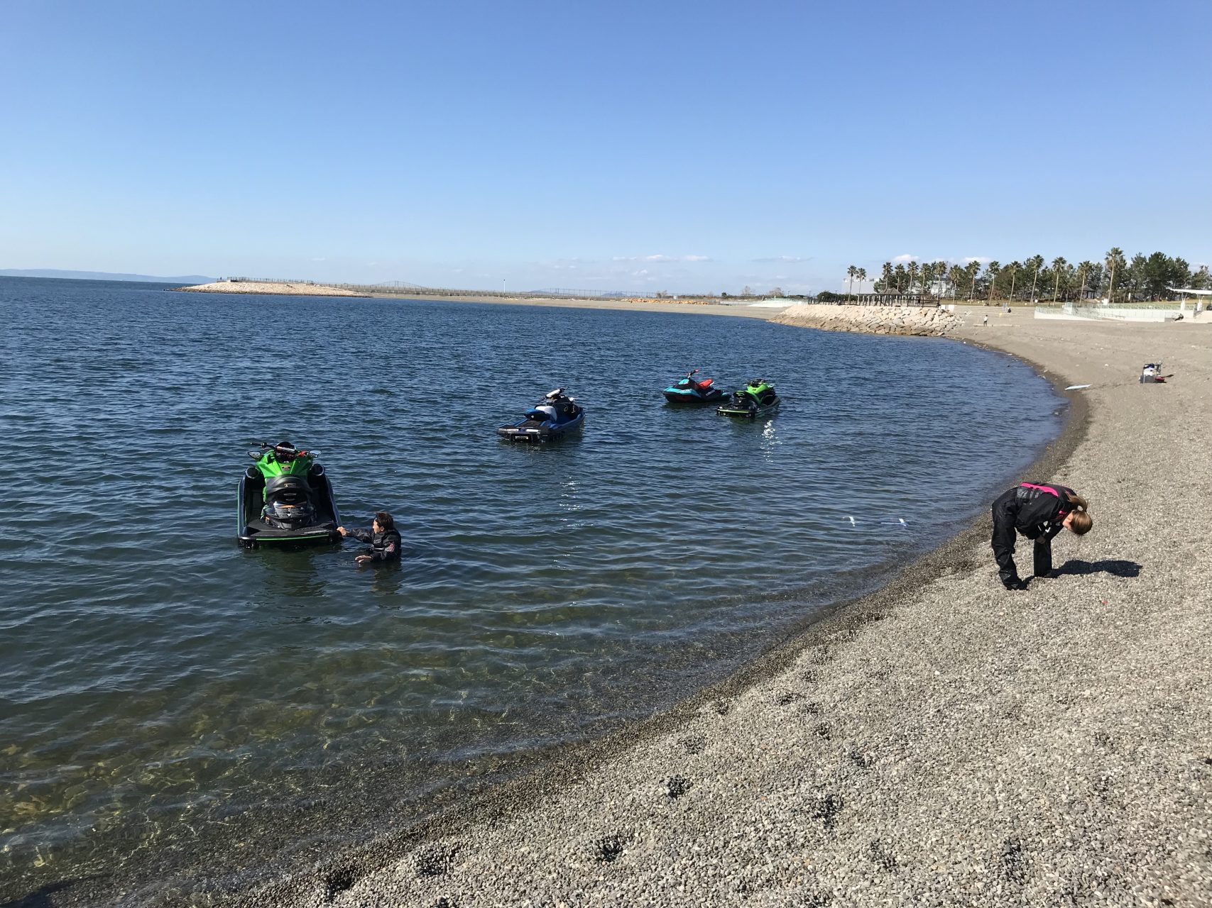 先日の祝日は4組のお客様と一緒に二色の浜へ乗りに行きました。 二色が初めてのお客様がいてゲレンデのご説明とジェットの色々な遊び方、使用方法、寒さ対策など現地でご説明させて頂きました。 琵琶湖耐久レースへ向けての練習も同時に行いました。 天気... -