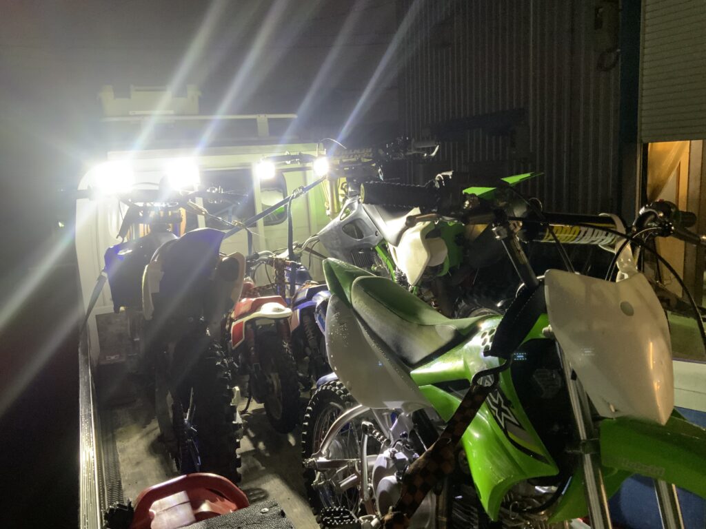 明日はオフロードバイク親子体験3組の為、マシン等のチェックです。